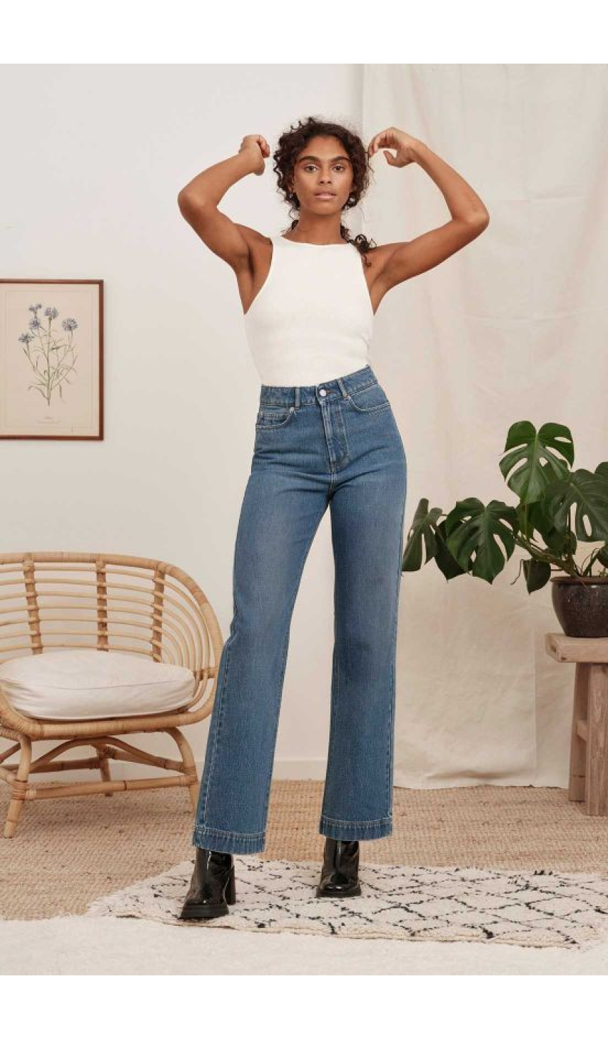LES jeans parfaits et magiques pour sublimer bon nombre de morphologies. La coupe flare, venue des années 70, est ajustée, voire moulante jusqu'aux genoux et s'évase ensuite nettement jusqu'aux chevilles. Le jean flare est particulièrement adapté aux silhouettes en V, c’est-à-dire aux femmes aux épaules plus larges que les hanches. Ce type de jean permet de rééquilibrer la silhouette en apportant du volume au bas du corps. Quant au bootcut, il se situe à mi-chemin entre le straight et le flare. Sa coupe est ajustée, sans être trop serrée, jusqu'aux genoux et s'évase légèrement ensuite. Le bootcut est une version moins extravagante et plus subtile du flare. Le jean bootcut convient à de nombreuses morphologies, particulièrement aux femmes rondes et pulpeuses. Ce type de jean est parfait pour les femmes aux hanches assez larges, comme les morphologies en A, par exemple. Si vous êtes petite ou avez les jambes courtes, prenez soin de ne pas vous noyer dans ces coupes évasées et préférez le bootcut au flare.