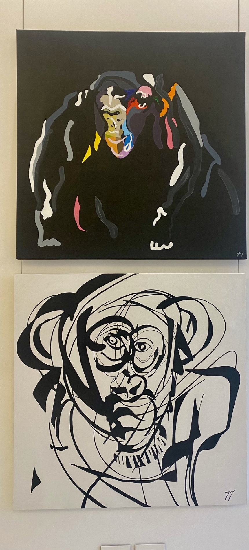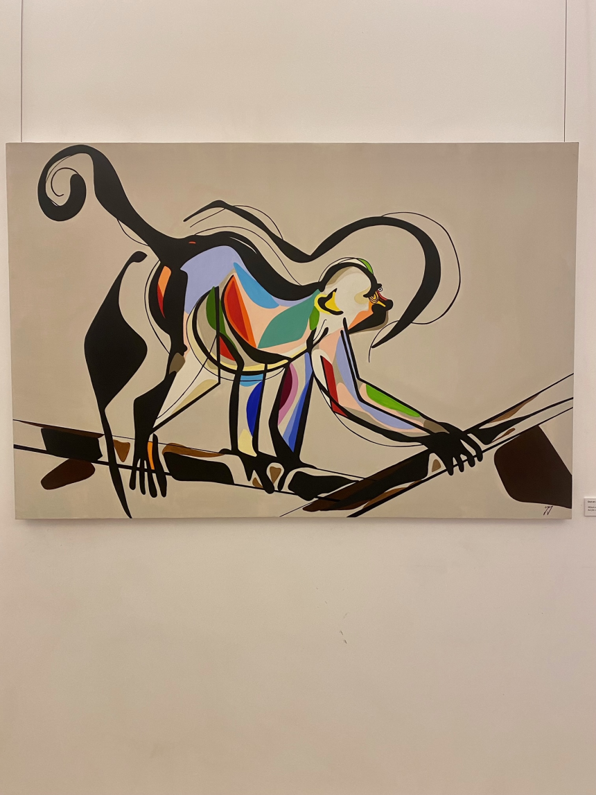 Ces impulsions primaires qui définissent la société qu’il critique à travers les faciès de singes seraient ses premières impressions en matière d’art. Il aura fallu une longue carrière dans le droit et la rigidité de son métier pour que Georges Meouchy donne libre cours à la créativité qui dormait en lui. C’est avec simplicité, humour et même autodérision qu'il présente son œuvre. Il ne se prend pas au sérieux et s’amuse en exposant une série de toiles qui interrogent les spectateurs sur la vraie condition humaine.