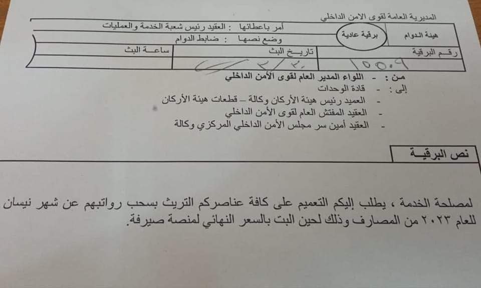Dans ce contexte, la direction des Renseignement de l’armée et la direction des Forces de sécurité intérieure ont émis jeudi soir une note interne recommandant à leurs effectifs de sursoir aux retraits de leurs salaires du mois d’avril. Sachant que les salaires des forces armées sont versés en amont.