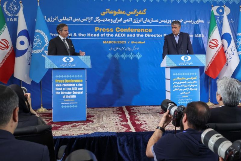 Le chef de l'AIEA et le directeur de l'Organisation de l'énergie atomique d'Iran Mohammad Eslami lors d'une conférence de presse à Téhéran en mars dernier.