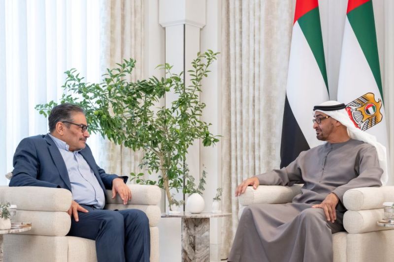 Ali Shemkhani, secrétaire du Conseil suprême iranien de sécurité nationale, lors de sa visite au président émirati MBZ.