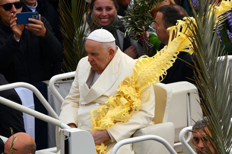 Le pape François est apparu sur la place Saint-Pierre pour la messe du dimanche des Rameaux, important événement du calendrier chrétien marquant l'entrée dans la Semaine sainte, au lendemain de sa sortie d'hôpital pour soigner une bronchite.