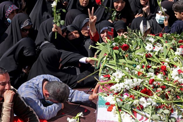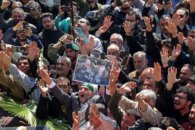 Plusieurs milliers d'Iraniens se sont réunis à Téhéran pour les funérailles de deux officiers des Gardiens de la Révolution, tués dans un raid israélien mené le 31 mars en Syrie.