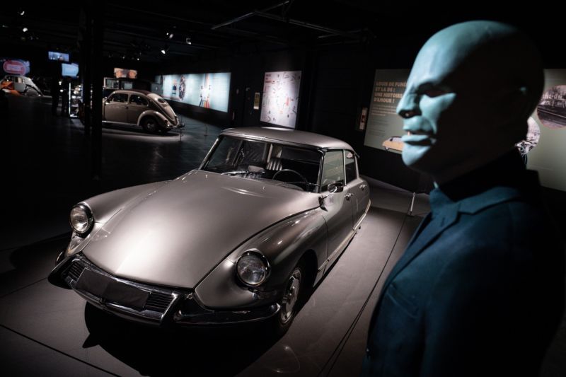 En partenariat avec le Musée Louis de Funès de Saint Raphaël (Var), le musée alsacien propose une plongée dans la filmographie du comédien en exposant, sur 1.200 m2, 18 voitures aperçues dans des films comme Fantomas, la série des Gendarmes, Les Grandes vacances ou encore Les aventures de Rabbi Jacob. Si la plupart des pièces proviennent des riches fonds du site mulhousien, quatre, en revanche, sont des modèles originaux. Outre la rutilante Ford Mustang rouge et l'Oldsmobile vues dans un Gendarme, les amateurs du Corniaud pourront admirer la Cadillac et, surtout, la fameuse 2 CV conduite par Bourvil et transformée en pièces détachées après avoir été emboutie par Louis de Funès au volant d'une Rolls.
