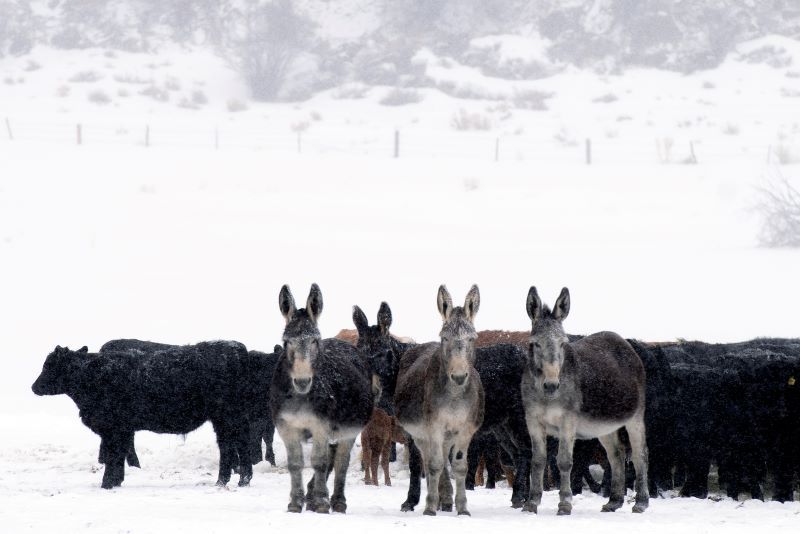 Venus du Nevada, les bourricots restent entre eux et ne semblent pas vouloir faire copain-copain avec leurs nouveaux voisins bovins, dans son ranch enneigé près de Walden, au nord de l'Etat. Mais "ils peuvent se défendre", témoigne le paysan. "Ils donnent des coups de pied, frappent et mordent." Une menace suffisante pour dissuader les loups, espère-t-il. Les prédateurs sont en général à la recherche de proies faciles et sont "suffisamment intelligents pour savoir quand ils risquent d'être blessés."