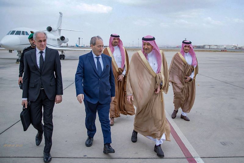 Le ministre saoudien des Affaires étrangères, Fayçal ben Farhane, et son homologue syrien Fayçal Mekdad, lors de leur réunion à Jeddah."Les deux parties ont souligné l'importance de renforcer la sécurité et de combattre le terrorisme sous toutes ses formes, et de renforcer la coopération dans la lutte contre la contrebande et le trafic de drogue, soulignant la nécessité d'aider les institutions de l'État syrien à étendre son contrôle sur ses territoires pour mettre fin à la présence des milices armées et l'ingérence extérieure dans les affaires intérieures syriennes", ajoute le communiqué. Par ailleurs, les deux ministres ont annoncé le lancement des procédures de reprise des services consulaires et des vols entre les deux pays.