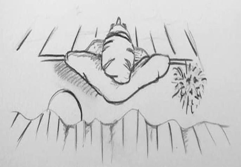 Camille ElamineNous étions heureux de nous revoir, il avait bonne mine sous ses longs cheveux noir corbeau trempés, lui barrant le visage en tous sens. Je lui ai acheté deux kaaks , extatique! J’étais tellement pressée de mordre à pleines dents dans le pain encore tiède, que je le déballais en remontant l’escalier mouillé du passage des autres habitants…