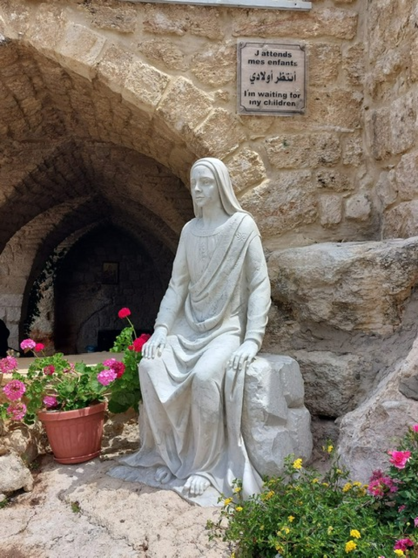 Et, la grotte est encore là, éclairée par de doux rayons, sobre et recueillie. Une église en elle-même depuis l’investissement du clergé sur les lieux. Un portique à trois arcades se dressera à cet endroit en 1868, à l’initiative de Jacques Abela, alors consul de Grande-Bretagne à Saïda et qui aurait été guéri d’une maladie après sa visite à la grotte. Un cimetière sera également mis en place, mais aussi une tour de 29 mètres de hauteur sur laquelle a été posée une statue de bronze de 8 mètres représentant la Vierge tenant son fils dans les bras, œuvre de l’artiste italien Pierotti et érigée le 16 mai 1963. Les guides qui vous accueilleront sur les lieux vous diront que lors de l’édification de la tour, les grues ont été bien incapables de hisser sur ce socle monumental la statue qui pesait 6,5 tonnes. Il aura fallu l’intervention divine pour qu’enfin la chose soit rendue possible au milieu des cris, des chants et des prières de la foule de fidèles. Du haut de la tour, la région se dévoile, verte, belle et sereine comme si rien de mal ne pouvait lui arriver, protégée par cette statue qui aime tous ses fils. Au bas de la tour se cache une petite chapelle ornée d’une icône représentant la Vierge assise à l’entrée de la grotte, entourée de Jésus et du berger qui avait retrouvé sa brebis tombée dans la grotte.