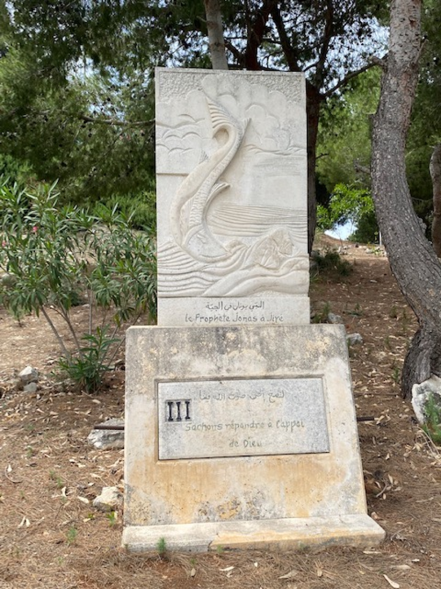 Mais, le sanctuaire de Notre-Dame de la Garde révèle d’autres surprises comme un parcours initiatique jalonné de découvertes. Sous le grand sycomore qui date du XVIᵉ siècle, comme le dit la pancarte, un escalier mène au jardin où un chemin est balisé de douze étapes ponctuées par des pierres sculptées qui racontent chacune une histoire biblique au Liban. Terre sacrée offrant à Salomon le bois si précieux du cèdre pour construire son temple à Jérusalem, le passage du prophète Élie à Sarepta (Sarafand), le prophète Jonas dans la région de Jiyeh (Nabi Younès), les noces de Cana, le Christ guérissant la fille de la Cananéenne à Sidon, la grotte devenue sacrée et miraculeuse, Jésus donnant les clés à Saint-Pierre à Banias, la transfiguration sur le mont Hermon, l’apôtre Saint Thomas prêchant à Tyr, Saint Paul à Sidon, les saints libanais et enfin comme un rappel cette phrase de Jean-Paul II pour qui le Liban est bien plus qu’un pays, un message.
