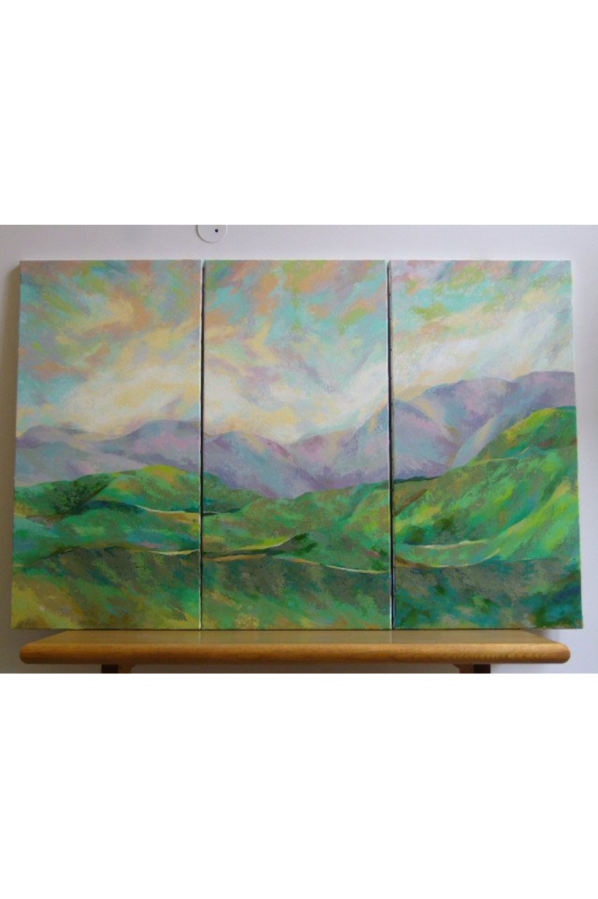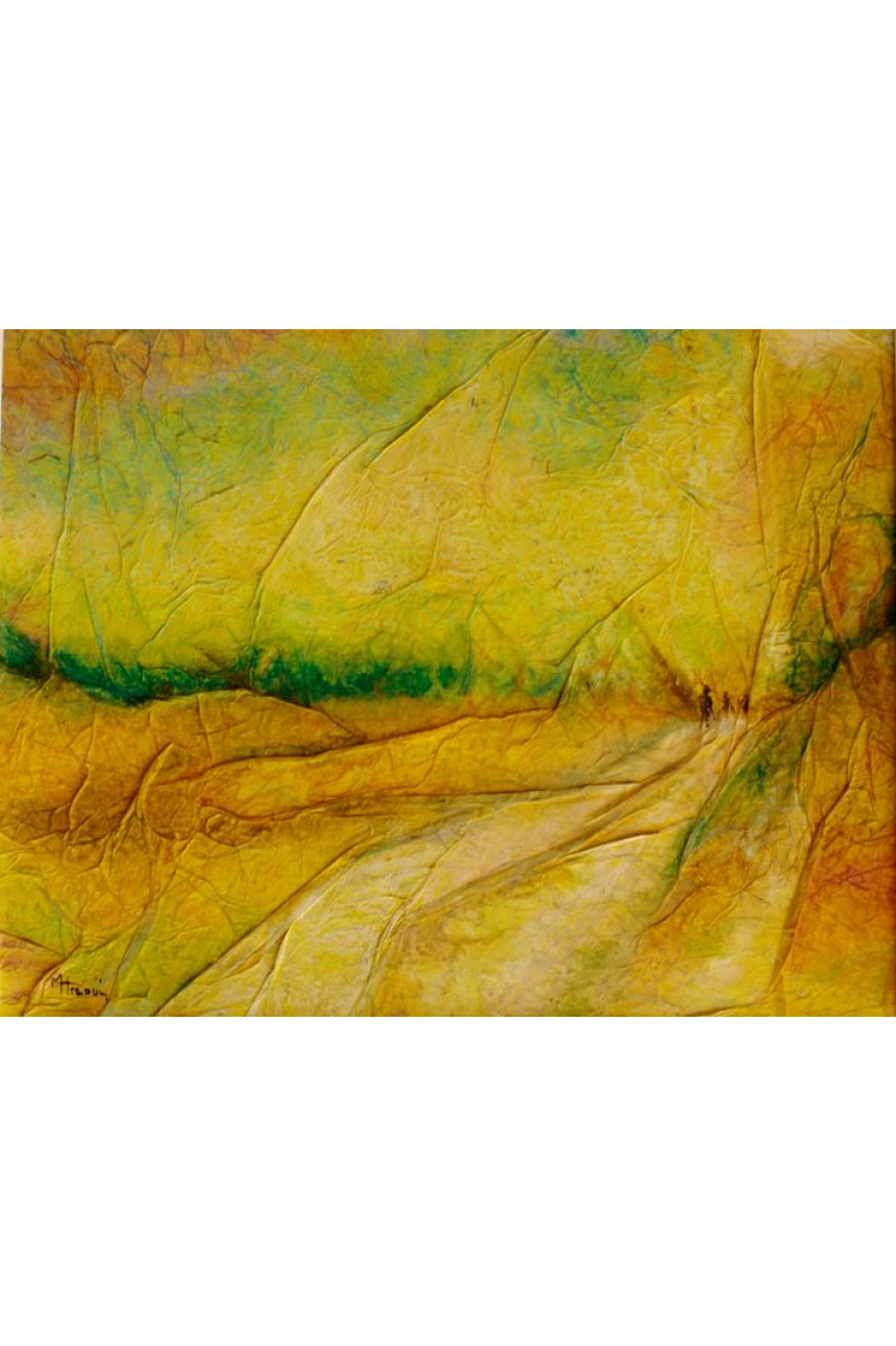 De gratitude, depuis mon engagement avec Compostelle. Je prolonge le chemin en dirigeant les futurs marcheurs ou les futurs pèlerins. C’est une reconnaissance pour les grâces obtenues par l’intercession de Saint-Jacques. J’assure l’accueil actuellement au centre de la société française jacquaire où je suis, en remettant le passeport du pèlerin ou la crédentiale au marcheur, pour qu’il puisse être hébergé dans les gîtes du chemin. Depuis mon accident, je ne peux plus effectuer de longues marches, mais il m’est arrivé de prendre l’avion, d’aller à Compostelle, de marcher de Porto sur le camino português (le chemin portugais), de traverser à pied quelques étapes. C’est un rituel qui m’a ouvert aussi beaucoup de portes, comme la chance de faire une exposition au Parlement européen sur le thème du premier itinéraire européen culturel, à l’échelle individuelle. Il y a aussi le marouflage que je fais depuis Compostelle, en utilisant un papier végétal très fin, que je froisse, mouille et colle sur la toile. Après, je dois m’octroyer un temps de réflexion sur les lignes du tableau à travers les nervures obtenues. C’est une technique délicate, difficile à réaliser, qui fait écho à l’effort du corps sur le chemin.