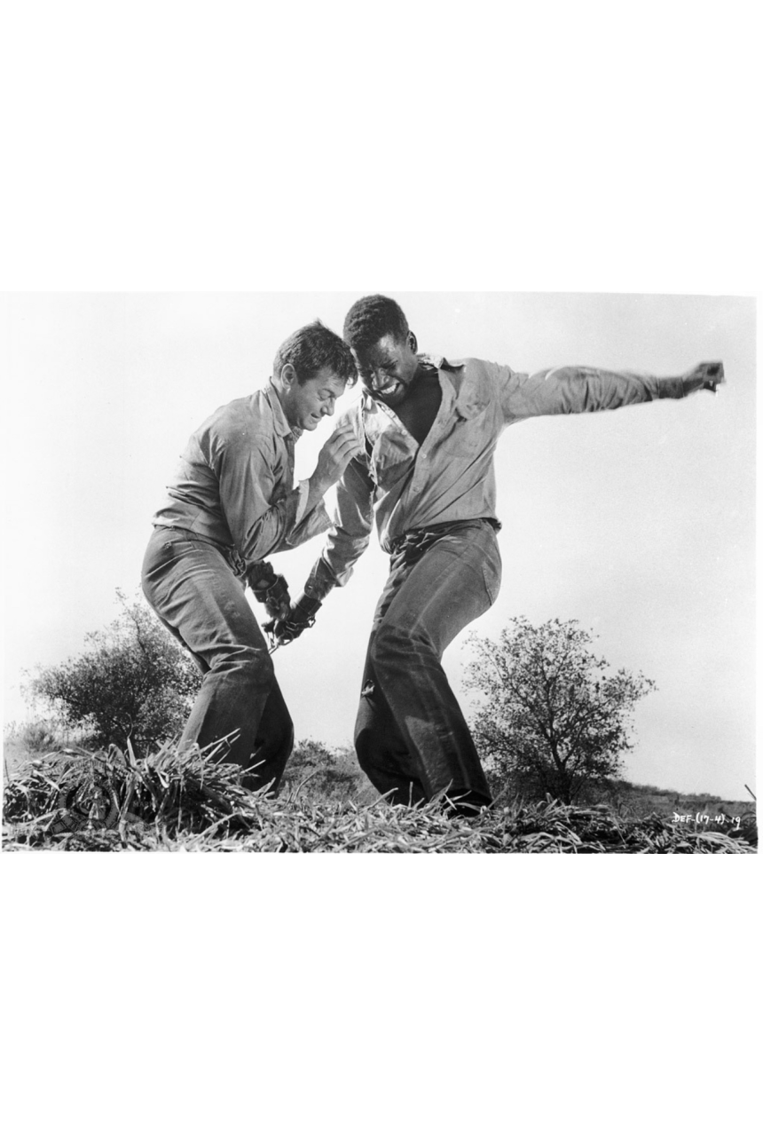 Toujours sur le thème du racisme, et toujours dans une perspective inclusive, il interprète le rôle d’un détenu noir enchaîné à un détenu blanc (interprété par Tony Curtis), tous deux en cavale, dans un autre chef-d’oeuvre, The Defiant Ones de Stanley Kramer (1958). Le film lui vaut une première nomination à l’Oscar du meilleur acteur. Il enchaîne ensuite une série d’excellents films dont: Porgy and Bess (1959) d’Otto Preminger, A Raisin in the Sun de Daniel Petrie (1961) - après avoir interprété la pièce à Broadway en 1959 - sur une famille noire qui souhaite emménager dans un quartier blanc et confrontée à l’opposition collective des habitants du quartier en question. Il se dégage de son interprétation une rage d’enfant sauvage et innocent, dans l’esprit du jeu très physique de Marlon Brando ou Paul Newman à l’époque. Ou encore Paris Blues (1961), de Martin Ritt avec Newman et Joanne Woodward, sur les pérégrinations de deux jazzmen américains à Paris - l’occasion de comparer entre le traitement réservé aux Noirs en France et l’intolérance blanche puritaine américaine.