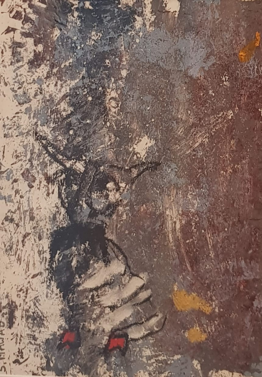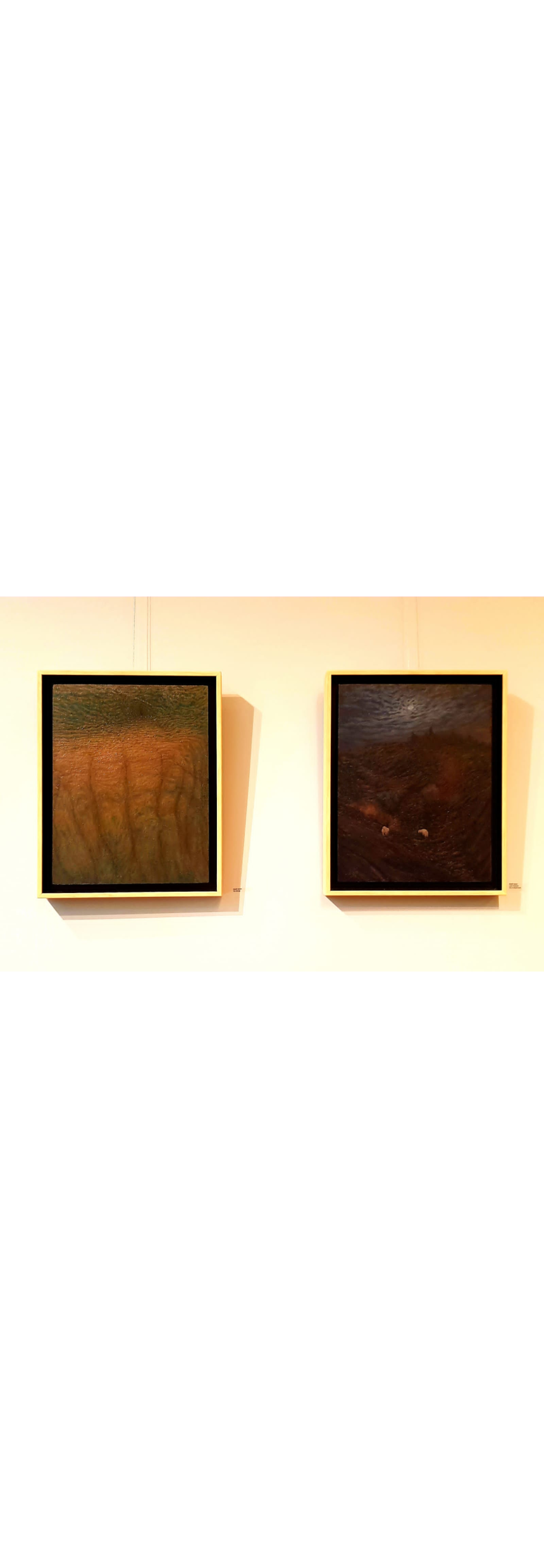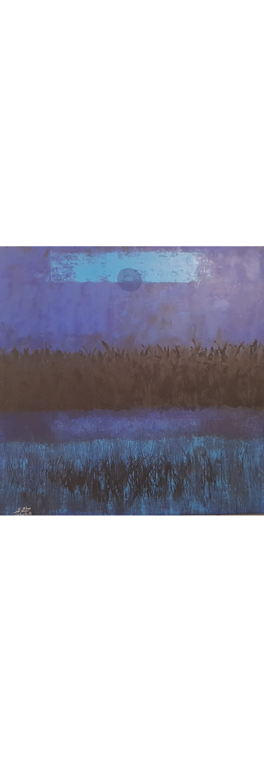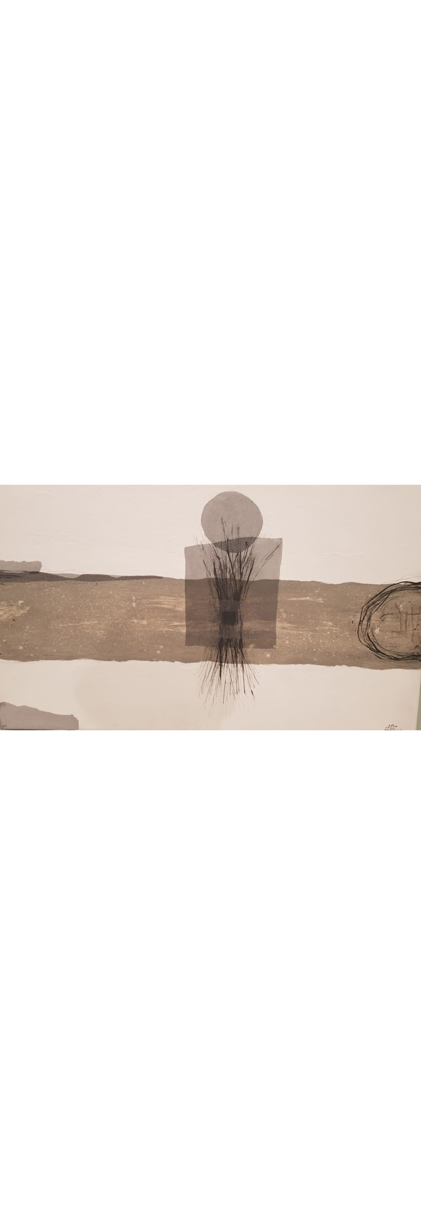 Un style qui hésite entre abstraction et surréalisme, une maîtrise de la peinture à l’huile pour un travail d’introspection et de minutie jusqu’à labourer la toile dans une représentation de paysages lunaires, un amour de la terre, comme une prière qui pousse à en saisir les moindres rides, à en partager le souffle, à se pencher sur ses sillons et inclinaisons, en partager le rythme, en répéter les motifs comme on égrène un chapelet, entrer en transe en hypnose. S'arrêter sur une image poignante sur une toile comme une complainte de l’exil, celle d’une femme qui tourne le dos à la lumière en s’éloignant de sa maison, de sa culture, de sa patrie, tenant précieusement entre les mains quelques reliques du passé…, une promesse d’aller-retour.