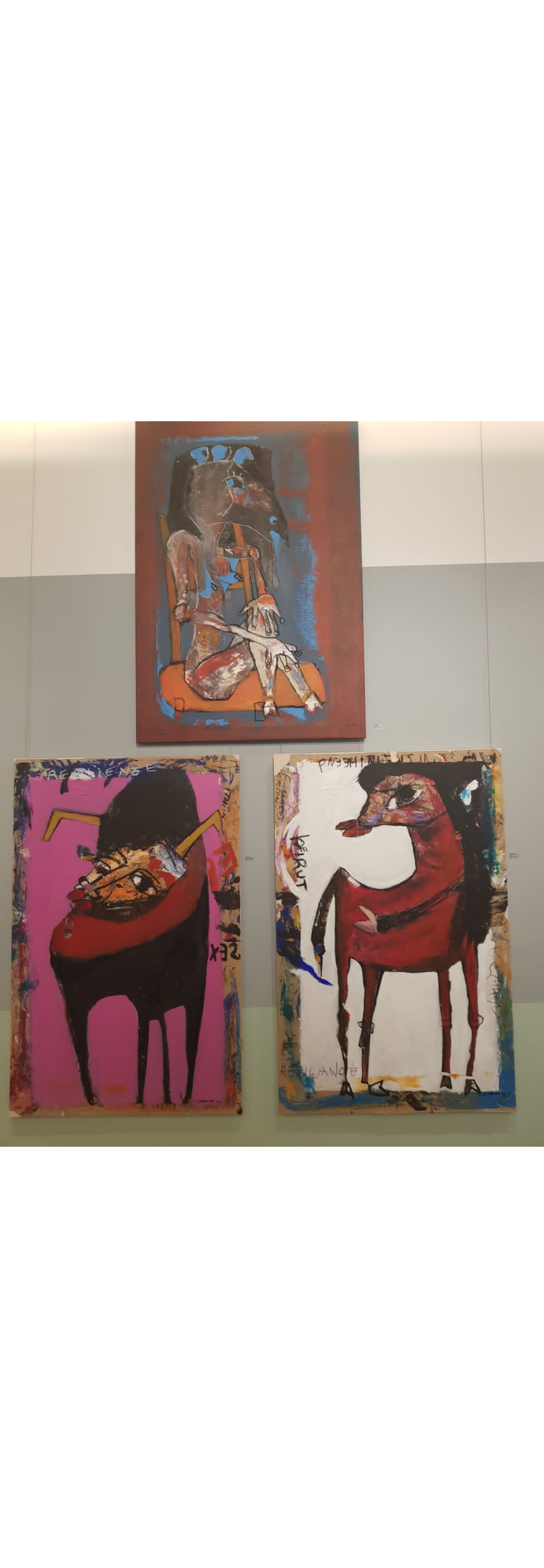 On part ainsi à la rencontre de Selim Moawad, ancien chef de mission humanitaire en Afrique et peintre libanais engagé qui brandit sur ses toiles aux couleurs stridentes des slogans politiques tels que «La résistance est à la pointe du sabot», à travers son taureau minautore, animal tout droit tiré de la mythologie, symbolisant le dieu phénicien Baal jetant un regard désolé sur son phœnix aux ailes déchiquetées, un Liban qui renaît de ses cendres, mais qui ne peut plus voler.