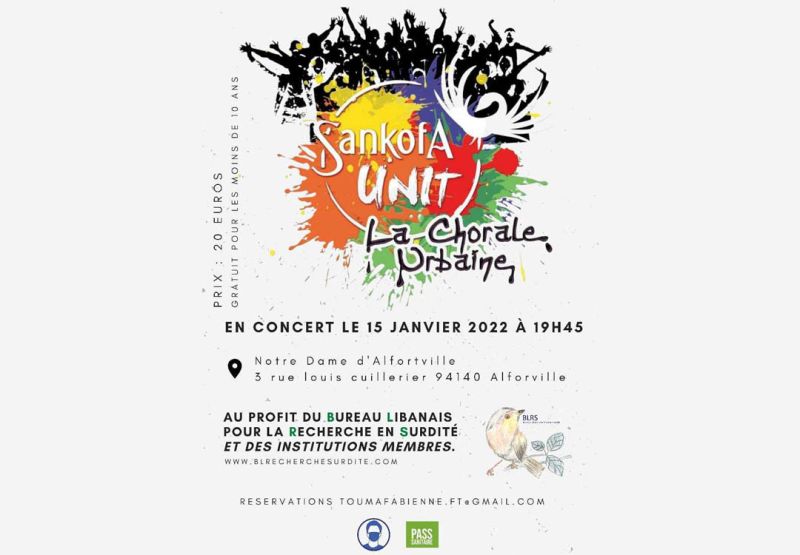 La chorale française Sankofa Unit présentera samedi prochain, 15 janvier, un concert spécial, le concert du Nouvel An à l’occasion de la nouvelle année, au profit du Bureau libanais pour la recherche en surdité et des institutions membres du BLRS. Le concert aura lieu à 19 h 45 (heure de Paris) en l’église Notre-Dame d’Alfortville (3 rue Louis Cuillerier – Alfortville ; réservations des billets : toumafabienne.ft@gmail.com ; la somme récoltée sera répartie entre les institutions membres du BLRS en vue d’un soutien pour l’année scolaire en cours).