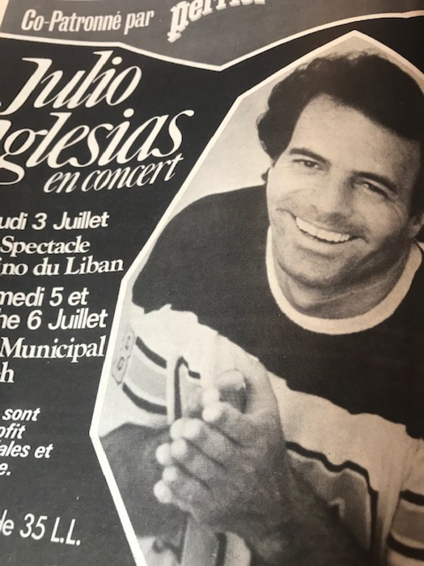 Côté musique, le jeune violoniste Mihran Kodjian reçoit le 12 juillet 1956 le premier prix du Conservatoire de Paris. En juillet 1961, Jacques Brel donne une série de galas, remportant un énorme succès. Il devient vite un habitué du Liban où il se fera de nombreux amis. Le 5 juillet 1971, Tino Rossi chante à Beyrouth Le plus beau tango du monde. En juillet 1973, Alain Abadie enregistre son nouveau 45 tours et, le 23 juillet 1978, Feyrouz rencontre un énorme succès au London Palladium. Deux soirées au cours desquelles les chansons composées par les frères Rahbani, la prestation de la troupe libanaise et la voix magique de notre diva font salle comble et émeuvent des milliers de spectateurs. En pleine guerre, Joe Dassin n’hésitera pas à venir consoler les Libanais, le 21 juillet 1979. Fidèle également et grand ami du Liban, Julio Iglésias fera chavirer le cœur des femmes en juillet 1980. Côté cinéma, Georges Lautner tourne au Liban en juillet 1966. Sur un scénario de Vahé Katcha, La Grande Sauterelle, dont de nombreuses scènes sont filmées au Casino du Liban, aura pour vedette Mireille Darc, Hardy Kruger et Francis Blanche. Pépé Abed, Gaston Chikhani et Alcide Borik y tiennent de petits rôles. Côté théâtre, la troupe du Théâtre Moderne interprète en arabe, le 5 juillet 1963, à Byblos, Les Mouches de Jean-Paul Sartre, avec, dans les rôles principaux, Antoine Kerbage, Reda Khoury et Théodora Racy. Le Théâtre de Dix Heures prend ses quartiers d’été à l’hôtel Saint-Roch où il présente, en juillet 1967, LamantaSion et, en juillet 1971, Sleiwoman. Le 30 juillet 1972, le cinéma théâtre Le Capitole ferme définitivement ses portes. Inauguré en novembre 1950, il aura accueilli les plus belles pièces du répertoire français.