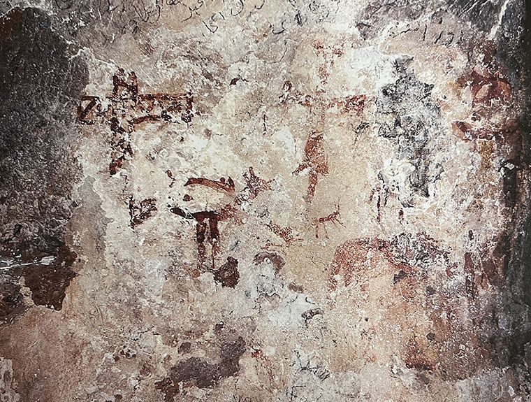 Peinture rupestre éthiopienne à Saint-Jean de Hadchit: croix de procession oryx et créature cornue. Speleorient n°1 photo Hani AbdulnourFin d’une coexistence