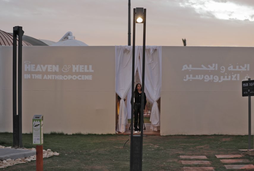 (ARCHIVES) L'artiste égyptienne Bahia Shehab se tient devant son installation "Heaven & ; Hell in the Anthropocene", qui sensibilise aux questions climatiques, exposée au sommet climatique COP27, en Egypte, le 14 novembre 2022. (Photo Mohammed ABED / AFP)