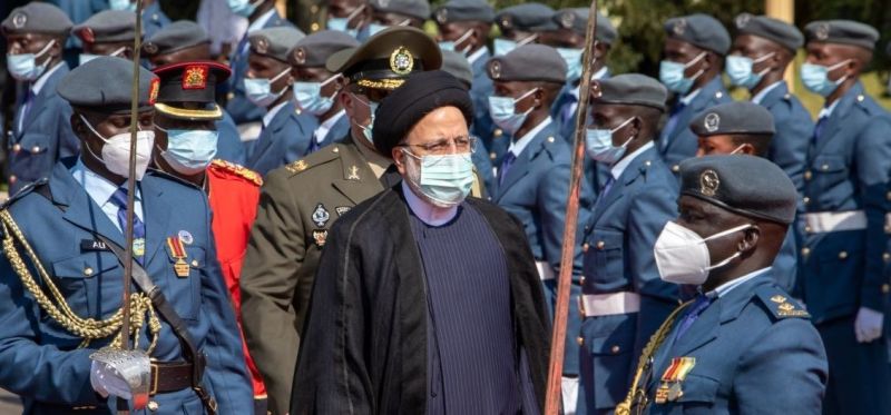 Raïssi passe en revue la Garde d'honneur au palais présidentiel, à Entebbe. (AFP)L'Afrique est devenue un champ de bataille diplomatique plus intense ces derniers mois entre l'Occident et la Russie, à couteaux tirés depuis l'invasion russe de l'Ukraine et qui tentent chacun de rallier à leurs camps les pays africains. Ces derniers ont eux été frappés de plein fouet par les fortes hausses de prix, alimentaires notamment, enregistrées depuis.