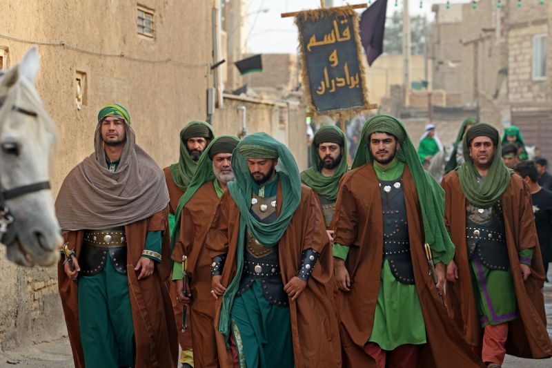 Mercredi, les participants ont perpétué la tradition qui anime leur ville depuis plus d'un siècle, en portant des costumes brodés et colorés, rappelant les vêtements arabes portés à l'époque de l'imam Hussein.