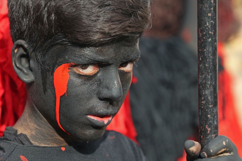 Une fois par an, à Noosh Abad, une ville du centre de l'Iran, les hommes enfilent des costumes de guerriers et les enfants se déguisent en démons, pour lancer les célébrations de l'Achoura, la plus importante fête musulmane chiite.