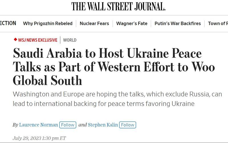 L'Arabie saoudite devrait accueillir des pourparlers de paix entre les pays occidentaux, l'Ukraine et les principaux pays en développement, dont l'Inde et le Brésil, au début du mois prochain, a affirmé le Wall Street Journal dimanche dans un article de Laurence Norman et Stephen Kalin.