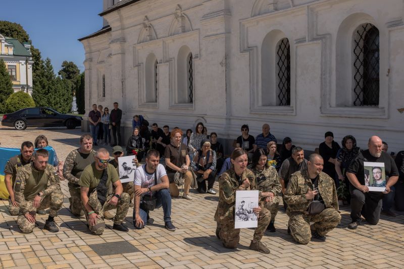 Des proches lors des funérailles du célèbre violoniste ukrainien Davyd Yakushyn tué au combat à l'est du pays, le 28 juillet 2023. (AFP)