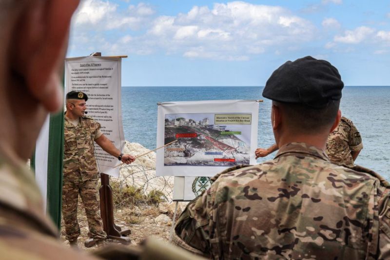 Un militaire explique aux représentants des pays membres du Conseil de sécurité les données relatives aux 13 points contestés au niveau de la Ligne bleue (Photo AFP/Anwar Amro)L’État hébreu avait pratiquement annexé Ghajar, durant la première semaine de juillet, en construisant une clôture au nord du village, le coupant du Liban. À Kfarchouba, l’installation par le Hezbollah d’une tente au niveau d’un terrain contesté à la frontière, puis les ripostes israéliennes ponctuelles à un tir de roquette en territoire israélien ont exacerbé cette tension.