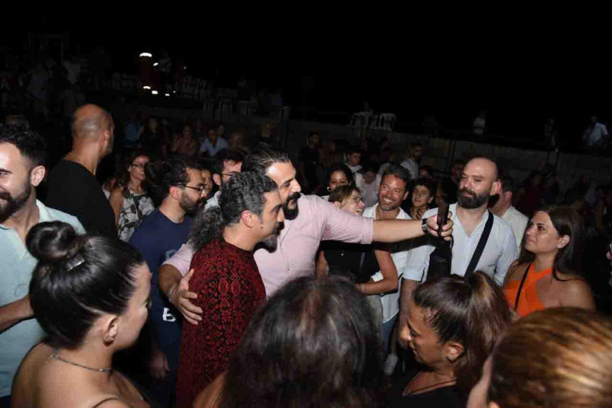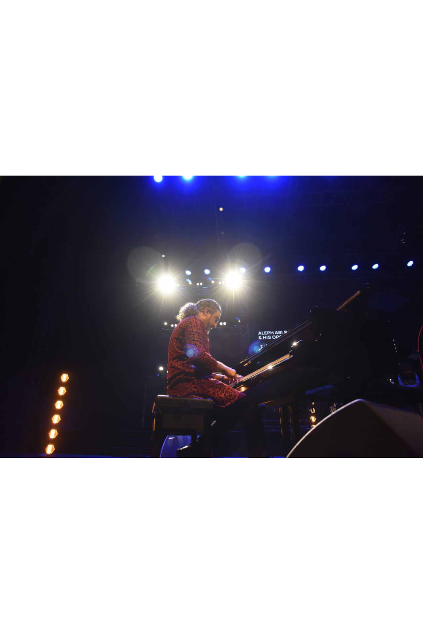Aleph arrive sur le podium, comme un séisme, un immense tourbillon qui remplit l’air d’énergie positive et d’euphorie. Dans un raz de marée, il fait danser les chaises de l’antique théâtre, où s’installent les mélomanes. Il accueille son public très chaleureusement, salue ses proches et ses ami.e.s, venu.e.s spécialement pour l’occasion, puisqu’il se produit ce soir dans son fief, son sol d’origine, plus précisément dans le majestueux théâtre romain de la plus vieille ville du monde. Dans son mot de bienvenue, il remercie spécialement les spectateurs et les spectatrices présent.e.s, «qui ne le connaissent pas personnellement, mais partagent avec lui des atomes crochus et se retrouvent dans son style de musique fusion», selon ses propres mots. Aleph souhaite à tout le public de sortir du stress quotidien et de se laisser emporter par la musique, de rêver. «Enivrez-vous» de musique, semble-t-il dire, la vie est un songe d’une nuit d’été! Plus jamais est le titre de la musique qu’Aleph a composée quand, atterré devant les atrocités de la vie, les abus et les crimes perpétrés contre les enfants, il voulait riposter à sa façon, mais surtout en mémoire des victimes de l’explosion apocalyptique du 4 août. Il est accompagné par la danseuse mexicaine Karen Lugo, qui mêle dans sa chorégraphie le tango, l’oriental et le flamenco, en harmonie parfaite avec le métissage musical d’Aleph. Elle est de rouge vêtue et porte un éventail assorti avec un éclairage flamboyant. Sa prestation exprime la volonté et la passion de revivre, de se relever et de se reconstruire, conformément au message artistique d’Aleph, qui est une célébration perpétuelle de la joie et de la vie. Antonio Serrano, le brillant harmoniciste espagnol, lauréat des Latin Grammy Awards, qui a collaboré avec Placido Domingo, emporte le public très haut, jusqu’aux nues. Yelsy Heredia, le célèbre contrebassiste cubain enflamme le public de nouveau avec son talent insolite et son percutant humour coutumier. Du début à la fin, Aleph s’adresse à l’audience, instaure un dialogue, «crée des liens, apprivoise», les plus réticent.e.s, les moins extraverti. e.s. Il présente lui-même les artistes, comme l’illustre percussionniste Bandolero, le fameux guitariste roumain Vally et les grands musiciens libanais Jihad Assad au qanun, Raed Abou Kamel à la flûte, Chadi Saad à l’accordéon, Charlie Fadel le percussionniste et Samir Afif à la derbaké. Installé derrière son piano, il joue, danse, chante et parle avec une grâce indescriptible. On dirait que le théâtre est simultanément sa maison, son port d’attache et son bateau ivre en partance vers des terres nouvelles. Les chansons libanaises qu’il a revisitées du répertoire de Zaki Nassif mettent le public en transe. Il n’y a que la beauté qui peut sauver les Libanaises.