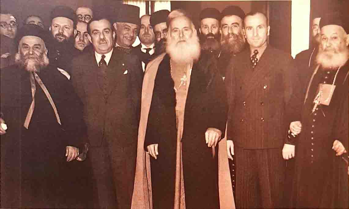 À Bkerké, en 1938, le pariarche Arida entre le président de la République Émile Eddé et le président du Conseil Abdallah Yafi.