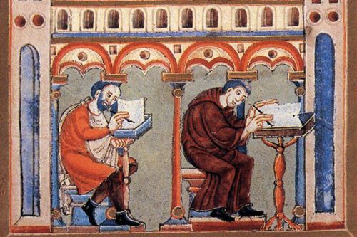 Scriptorium de l’abbaye d’Echternach représenté dans le «Livre des péricopes» d’Henri II 1002-1012 AD. ©WikimediaUne culture commune