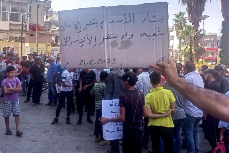 Une manifestation à Souaida, dans le sud de la Syrie, le 21 août 2023. (AFP)