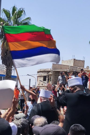 Soueida se trouve actuellement dans la zone sous contrôle du régime de Bachar al-Assad, elle est largement restée à l'écart de la sanglante guerre civile.