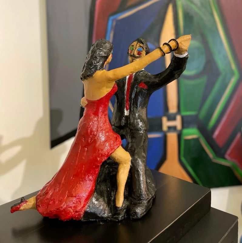 Une rencontre inspirée par la passion, celle de la fondatrice du Club Social Bacchus pour la musique et celle de Nada Chaoul pour son mari Melhem, disparu il y a un an, et pour la belle maison zahliote qui a abrité leur longue étreinte! Il fallait franchir le pas, faire vibrer les murs, réunir les ami.e.s et les passionné.e.s de tango, la musique emblématique de l’Amérique latine, cette région où vécurent les Chaoul. D’emblée, une magnifique sculpture représentant un couple de tangueros, réalisée par la peintre et sculptrice Nicole Karam, vous accueille dans la réception. Le spectacle démarre à 16h30 avec le mot très émouvant de la professeure de droit à l’USJ Nada Chaoul, connue aussi pour sa plume décapante et sa peinture de la société libanaise. Puis c’est au tour de Chloé Kazan Fakhoury, diplômée en lettres, théâtre et psychologie, de raconter le tango, les différentes étapes de son évolution et les grandes figures qui l’ont marqué de leur sceau, en alternance avec des danses fougueuses sur les airs mythiques du tango. Elle commence par définir l’étymologie du mot tango, qu’on associe tantôt au tambour, tantôt au soleil ou au dieu du tonnerre, ou aux lieux où l’on parquait les esclaves. Puis les artistes Mireille et Raja Safar présentent une chorégraphie sensuelle sur La Yumba d’Osvaldo Pugliese. Ensuite, Chloé Fakhoury résume les courants principaux de l'évolution du tango, selon la succession des périodes: la vieille garde (le tango primitif sur les rives du Rio de la Plata), la nouvelle garde, l’âge d’or, le déclin, le tango nuevo et le melting pot. Plus tard, c’est au tour de l’accordéoniste Nagi Saliba de jouer la partition El Choclo (L’épi de maïs) du compositeur Angel Villoldo, qui récolta un succès fou auprès du public argentin et français lors de sa sortie en 1903 à Buenos Aires. Sur ce, l’instigatrice du projet reprend la parole pour narrer l’histoire de La Cumparsita, l’un des plus célèbres tangos uruguayens du monde, composé par Gerardo Matos Rodriguez, qu’on surnomme «le tango des tangos» et qui est devenu l’hymne populaire et culturel de l’Uruguay par décret présidentiel du 2 février 1998. Elle souligne qu’elle a été jouée pour la première fois au café La Giralda, avant que les musiciens Nagi Saliba et Habib Khalil ne l’interprètent en duo à l’accordéon devant un public exalté. Elle enchaîne avec les caractéristiques du bandonéon, originaire d’Allemagne, qui est l’instrument emblématique du tango. Vient alors une danse effectuée par le couple Safar sur la musique de Lo que vieron mis ojos de Juan Canaro. La part belle est consacrée au roi du tango, Carlos Gardel, et à sa célèbre chanson Por una cabeza, jouée à l’accordéon par Habib Khalil. Avant le dénouement, Chloé K.F parle de la genèse de Libertango et du parcours de son compositeur Astor Piazolla, soutenue par l'interprétation du célèbre air de tango par Habib Khalil. Pour conclure, Chloé Fakhoury raconte brièvement la belle aventure du Club Social Bacchus, pendant que Mireille et Raja Safar nous emportent sur les ailes de La Cumparsita.