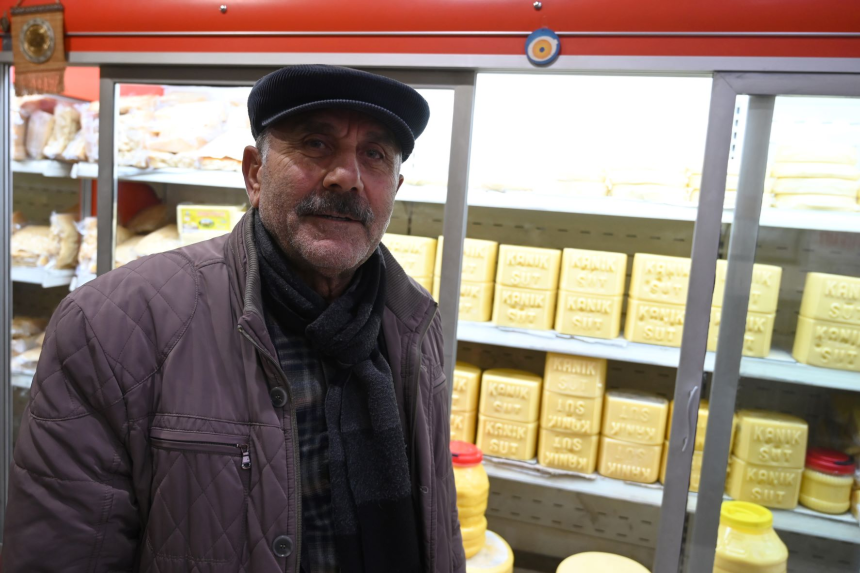 "On faisait de bonnes affaires avec les Arméniens", se souvient Husseyin Kanik dans son échoppe à Kars (la capitale régionale à 50 km d'Akyaka), posant devant l'armoire réfrigérée où s'empilent ses fromages, la spécialité de Kars.