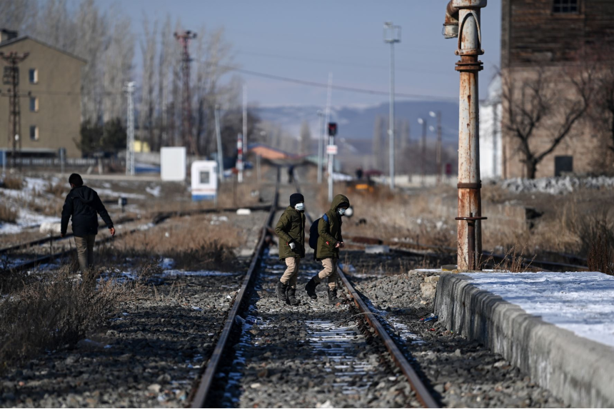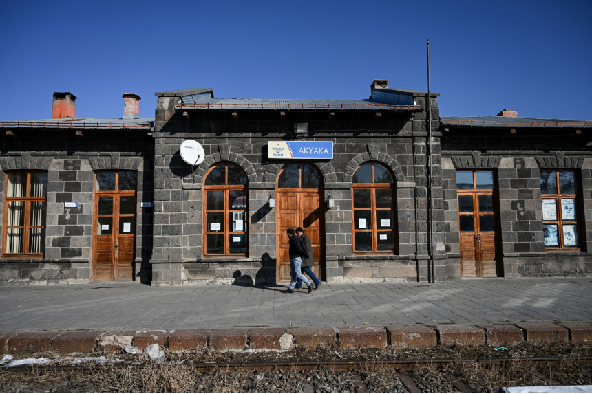 Devant la petite gare en basalte noir d'Akyaka, en Turquie, dernier arrêt avant l'Arménie, les rails sont abandonnés aux oiseaux et aux chiens errants depuis près de 30 ans.