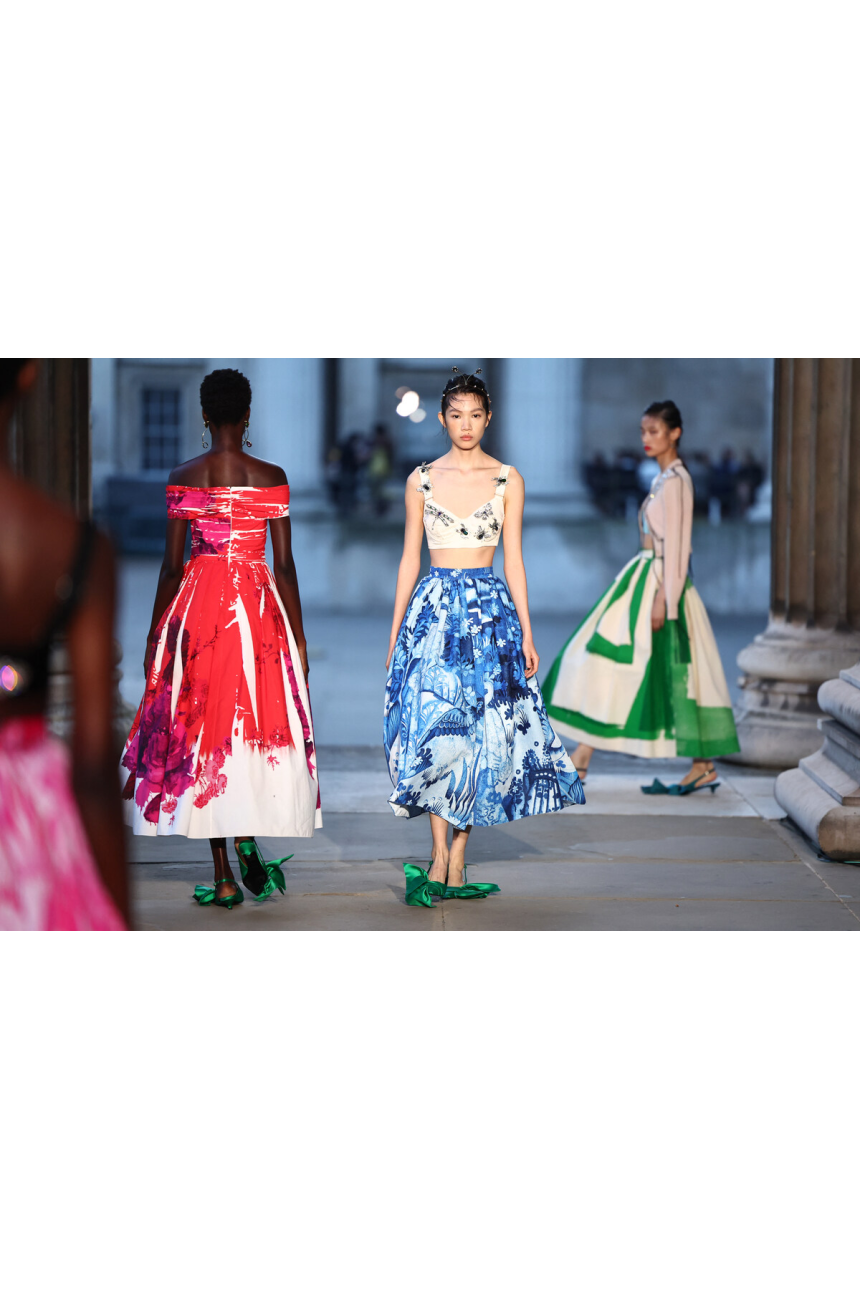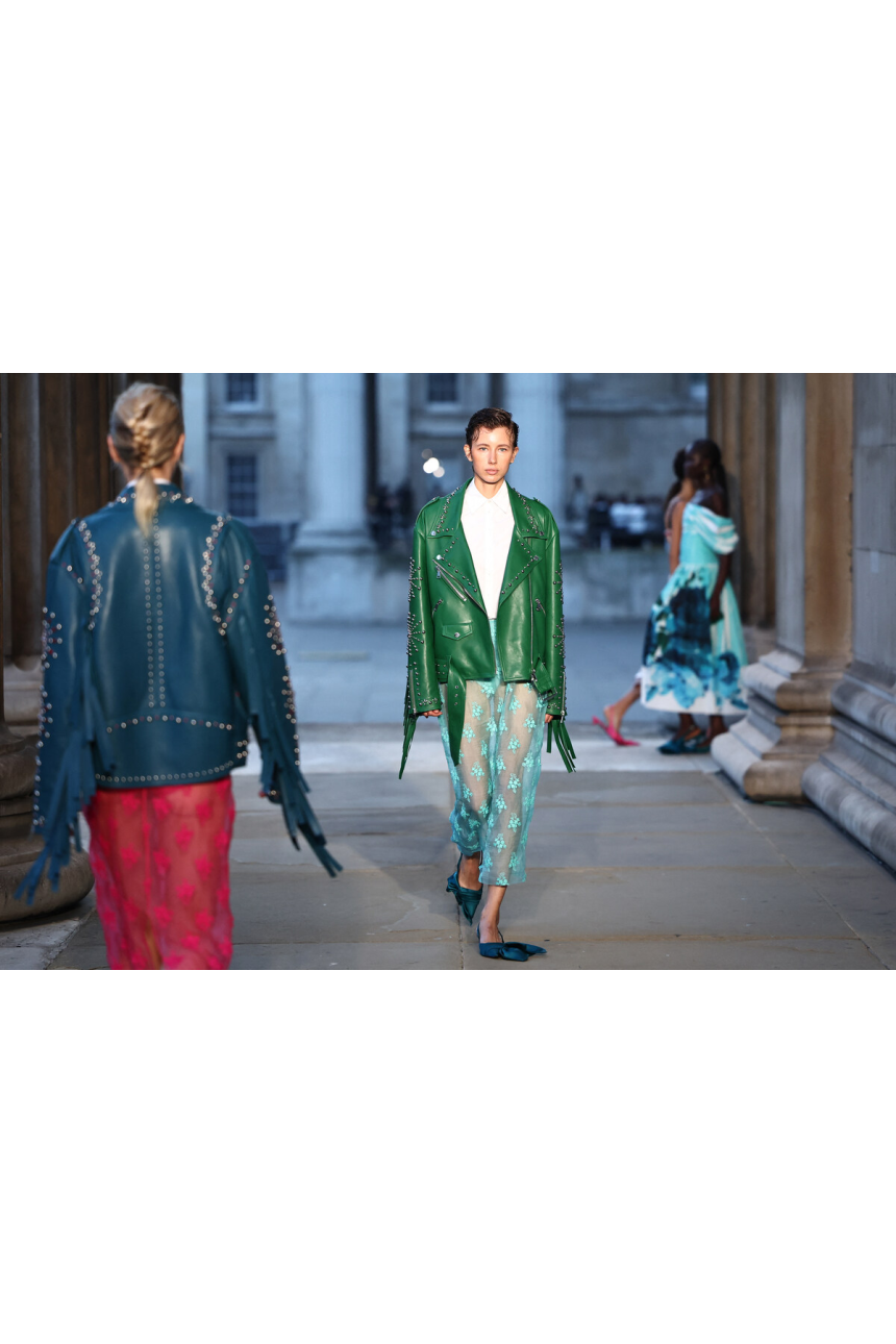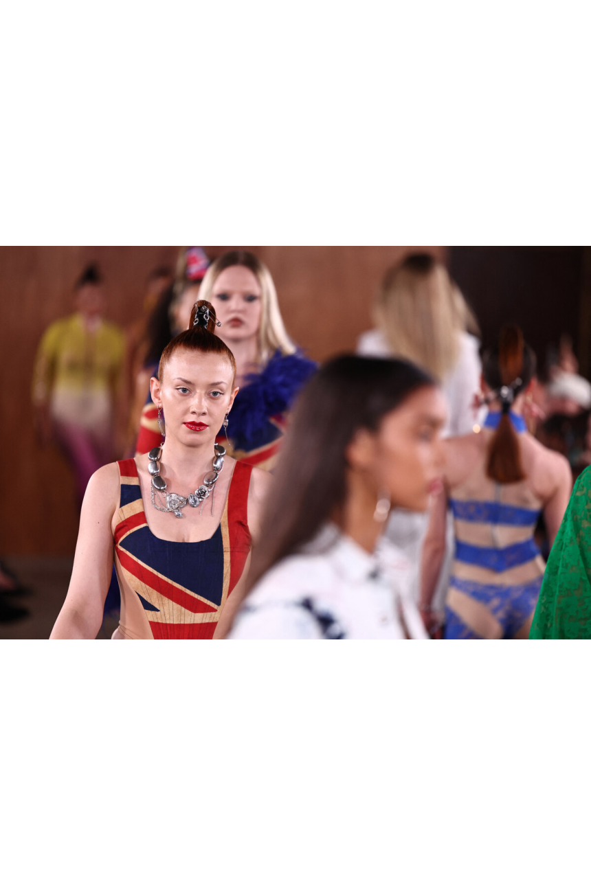 Alors que le week-end de la mode se poursuivait, Sinead Gorey, la Londonienne en pleine ascension, a fait son entrée avec une collection vibrant d’énergie et de couleurs vivifiantes. Baptisée «British Summer of Love», cette série s’offre comme un hommage renouvelé à la culture britannique, convoquant l’esprit des Spice Girls et des Sex Pistols dans une célébration joyeuse et rebelle du glamour, du sexy et du débridé.