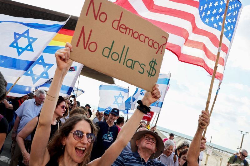Il s'agit d'une claire allusion à la réforme de la justice lancée par le gouvernement israélien, qui a déclenché un mouvement de contestation massif.