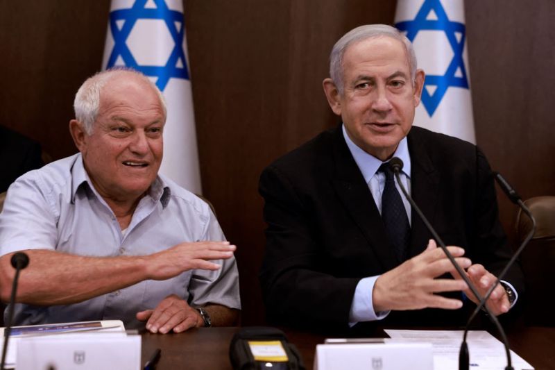 Le ministre israélien du Tourisme Haïm Katz à côté de Benjamin Netanyahu, lors d'une réunion du cabinet israélien. (AFP)