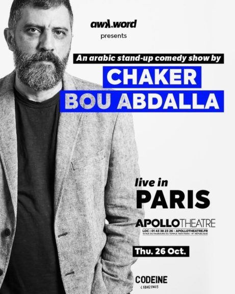 Le public expatrié et arabophone l’attendait impatiemment! Il montera enfin sur les planches des diverses salles européennes avec sa nouvelle pièce Codéine. Pourtant, Chaker Bou Abdalla était un graphic designer et n’envisageait pas une carrière dans le stand-up. C’est grâce à une ancienne vidéo produite lors de sa formation de théâtre qu’il est contacté et encouragé par l’un des fondateurs d’awk.word qui le presse de reprendre la scène et de se joindre aux humoristes d’awk.word en se lançant dans le stand-up.