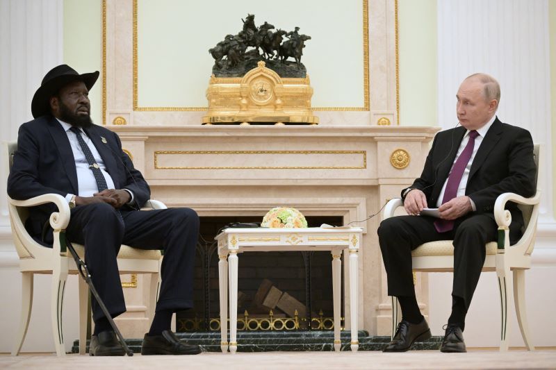 Le président russe Vladimir Poutine a reçu jeudi son homologue sud-soudanais Salva Kiir. (AFP)