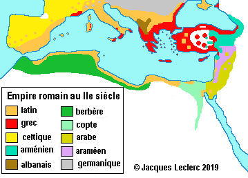 Les langues du bassin méditerranéen au IIᵉ siècle. ©Jacques LeclercLa langue nationale