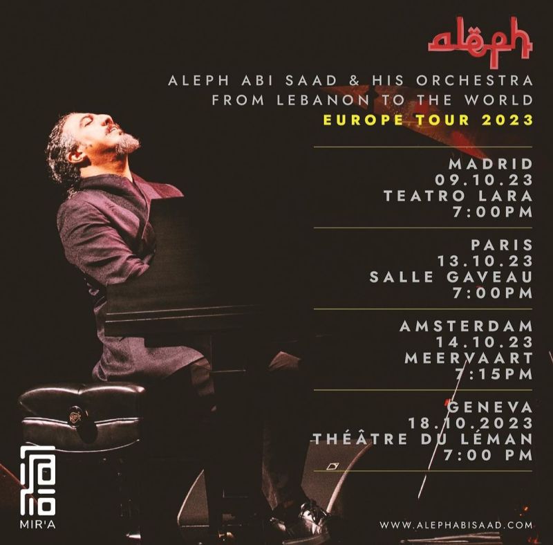 Après une tournée au Canada et un stop à Byblos cet été, Aleph reprend la route avec une tournée exceptionnelle en Europe, du 9 au 18 octobre, à Madrid, Amsterdam, Genève et Paris. Un voyage musical à travers lequel il souhaite partager la beauté et la résilience de son pays d'origine.