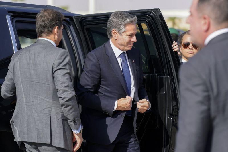 Anthony Blinken à l'aéroport d'Abu Dhabi (Photo de Jacquelyn Martin / POOL / AFP)Quant au ministre américain, il a appelé la Chine, partenaire de l'Iran, à user de son influence auprès de l'allié du Hamas, pour favoriser l'apaisement au Moyen-Orient.
