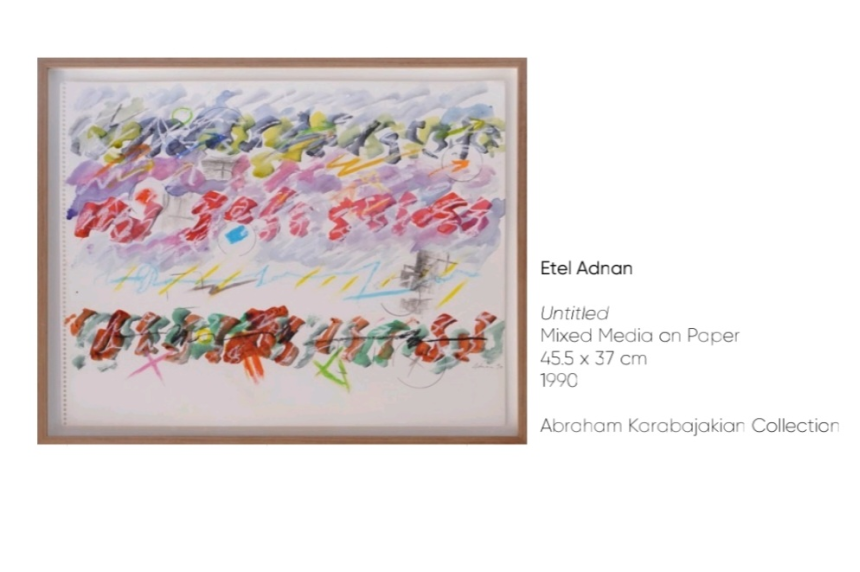 SM: Ce n’est pas un dialogue esthétique. Les émergentes ont été inspirées par le parcours, la carrière et parfois les multiples talents des modernes. Par exemple Etel Adnan multipliait les casquettes. Elle était artiste-peintre, écrivaine et poétesse. Les jeunes talents étaient libres de s’inspirer de n’importe quelle discipline qu’elle pratiquait. Donc Randa et moi avons sélectionné pour chaque artiste émergente, une autre moderne, dans l’objectif de créer des ponts.