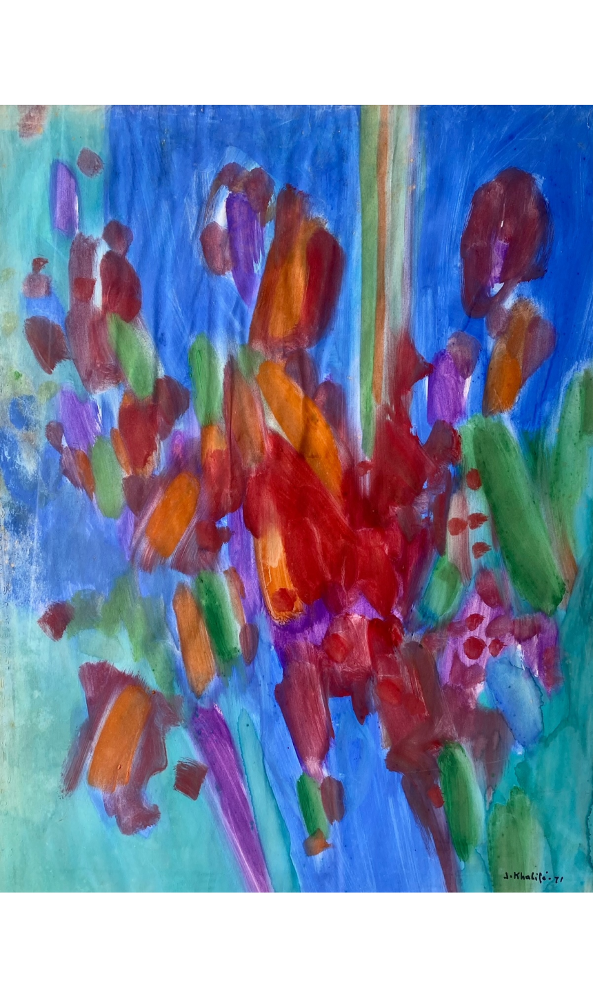 Jean Khalifé, souvent critiqué et incompris, est pourtant l’un des précurseurs de l’art abstrait au Liban. Lorsqu’il s’est tourné vers l’abstraction dans les années 1950, nombreux étaient ceux qui rejetaient cette nouvelle forme d’expression. Pourtant, indifférent aux critiques, il a persisté et a ouvert la voie à de nombreux artistes, marquant son style par des coups de pinceau vigoureux, des compositions audacieuses et une palette de couleurs vibrantes.