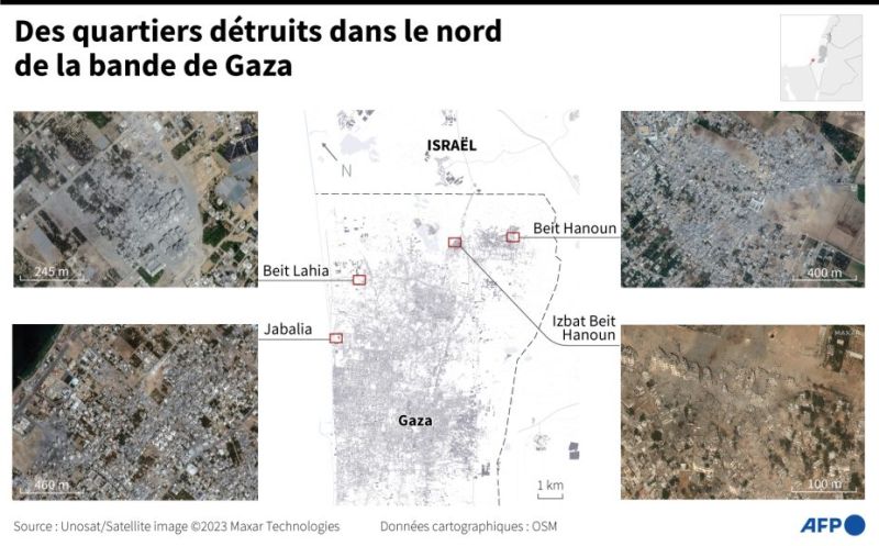 Carte localisant les destructions dans plusieurs villes de la bande de Gaza. Photo Maxar Technologies - AFP / AFP / SYLVIE HUSSON)"Le Premier ministre israélien Benjamin "Netanyahu est un menteur. Les Israéliens nous ont appelés à partir vers le sud et ils nous ont tués", a-t-elle ajouté.
