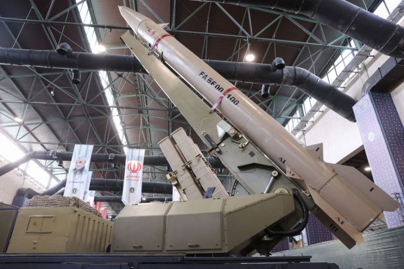 Un missile iranien Fateh présenté lors d'une cérémonie célébrant les réalisations de l'industrie de la défense du pays à Téhéran. (Présidence iranienne, AFP)Défense antiaérienne