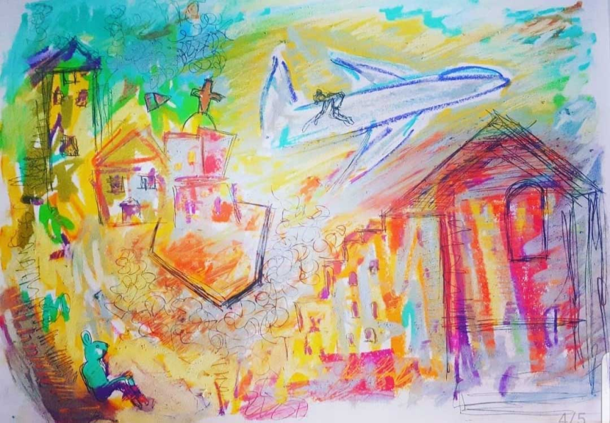 En effet, par ses toiles, Joanna nous interpelle, appelle de très loin l'enfant en nous, l'enfant enfoui sous des couches de préjugés et d'interdits ou perdu dans les dédales de la mémoire. Elle nous pousse enfin à retrouver notre innocence première, notre insouciance d'avant. Oui, l'artiste, comme l'enfant, nous porte par son regard à survoler le monde, à soulever des pans de mémoire dans un besoin d’apesanteur.