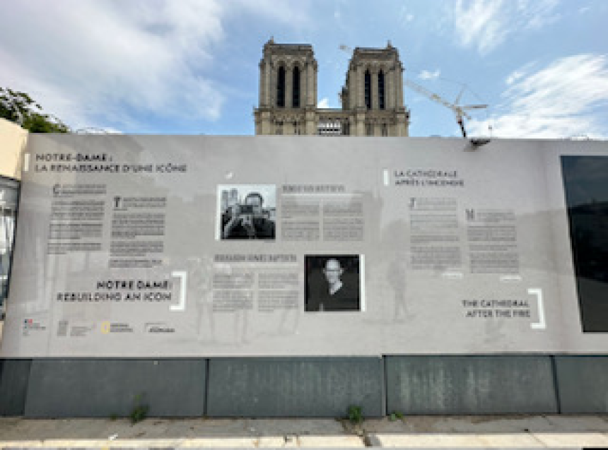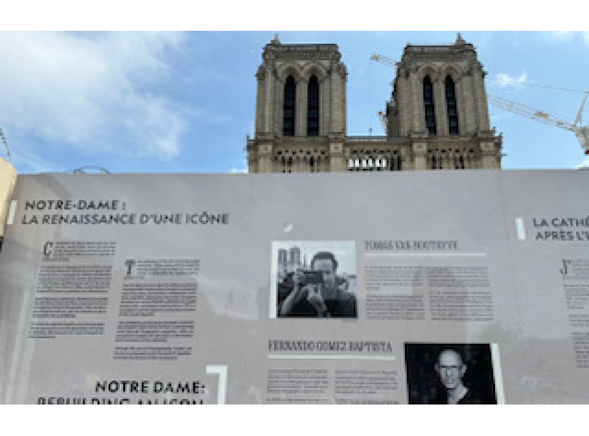 Détruite par un incendie en avril 2019, la flèche de Notre Dame de Paris, une réplique exacte de l'originale conçue par l'architecte du XIXe siècle, Viollet-Le-Duc, sera achevée en décembre. Bien que la structure en bois de chêne massif de la flèche sera terminée, l'échafaudage restera en place pour la pose de la couverture et des ornements en plomb en 2024.