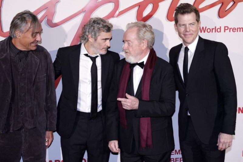 Le réalisateur Ridley Scott (2e droite) l'acteur Joaquin Phoenix (2e gauche) le directeur de la photographie Darius Wolski (gauche) et le producteur Kevin J. Walsh (droite) lors de la première mondiale du film «Napoléon» à Paris le 14 novembre 2023.Crédit photo: Geoffroy Van Der Hasselt / AFP